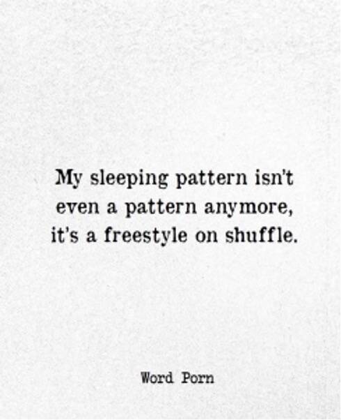 Mijn slaap is niet “normaal” volgens de norm. Ik slaap vaak overdag, en minder s’nachts. Het is nu eenmaal zo. Probeer dit aub niet te veranderen. Ik hou van de rust in de nacht, er zijn dan geen verplichtingen.
